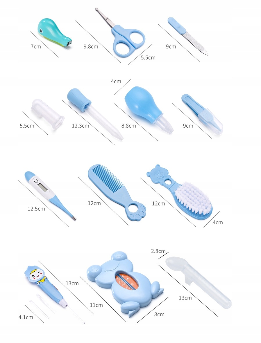 Безопасный набор по уходу за ребенком: чтобы сделать каждого ребенка аккуратным и здоровым, мы разработали этот комплект по уходу. Набор изготовлен из высококачественных и безопасных материалов, чтобы гарантировать, что он не содержит BPA и безопасен для использования, который предоставляет родителям. Предоставьте своему ребенку лучшее медицинское обслуживание Проект для у нас есть и ребенок: этот комплект по уходу за ребенком эргономичен, удобен и безопасен для ношения. Более удобный для медицинского использования: аспиратор носа насоса может легко очистить носовую грязь, а раздвоенный дизайн легко удалить и чистить наборы маникюров для детей всех возрастов, производятся в соответствии со стандартами гигиены. Изготовленная из точной нержавеющей стали, лезвие не уничтожает и ржавеет, поэтому вы можете безопасно разрезать небольшие ногти. Ручка изготовлена из ABS, нетоксичного, не скользящего, долговечного и свободного от коррозийных химикатов. Для новорожденных ногти, кисть для новорожденных, ногчик, расческа для новорожденных, аспиратор носа для новорожденных, электронный термометр, водный термометр, 2 аксессуара для кормления (индивидуально), пинцет, кисть для пальцев, ушная палочка