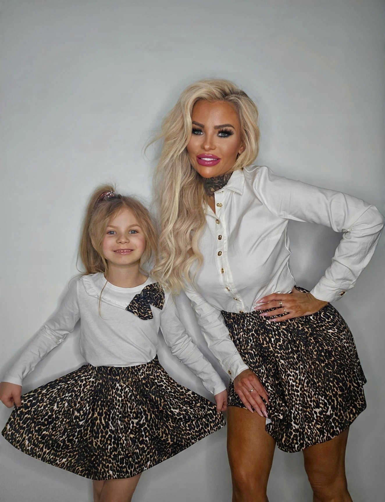 Установите маму маму дочь юбка леопардового леопарда + подарка Saint M/L