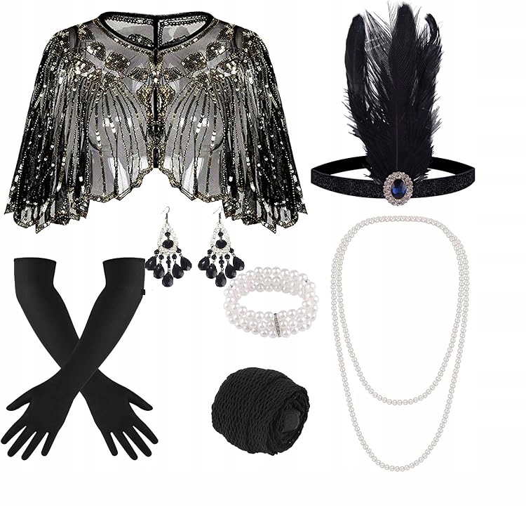 Мечтаете вернуться во времена Великого Гэтсби? Этот элегантный набор аксессуаров — ключ к созданию ослепительного стиля Флэппер эпохи бурных двадцатых! Идеально подходит для бала, Нового года, свадьбы в стиле ретро или любого другого случая. тематическая вечеринка, где царят джаз и гламур.