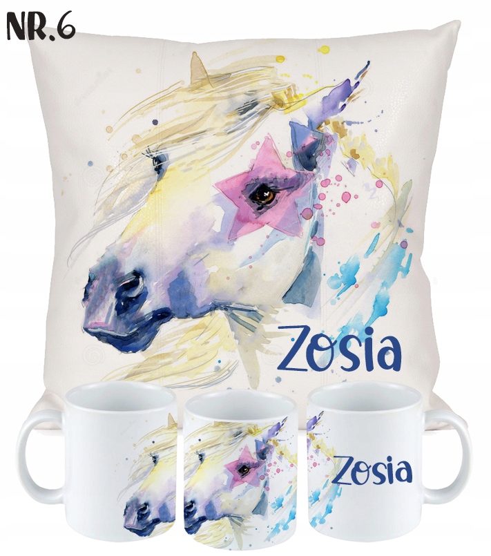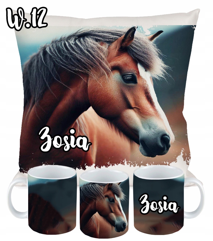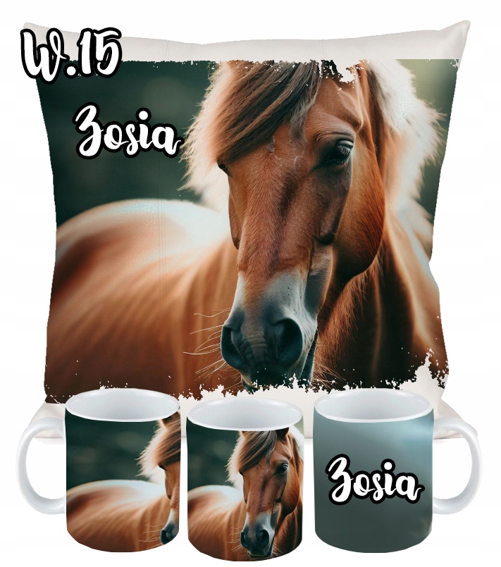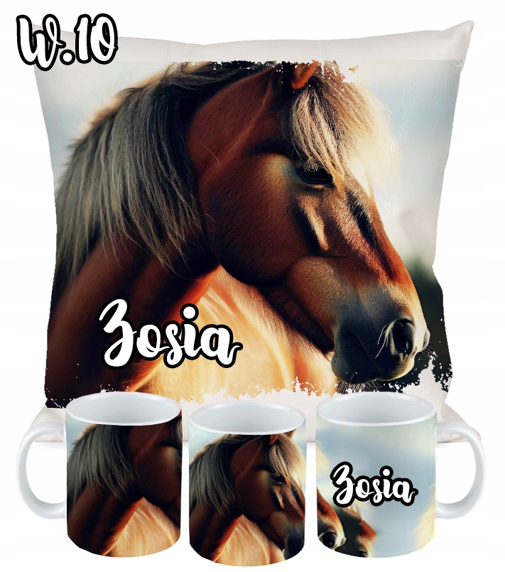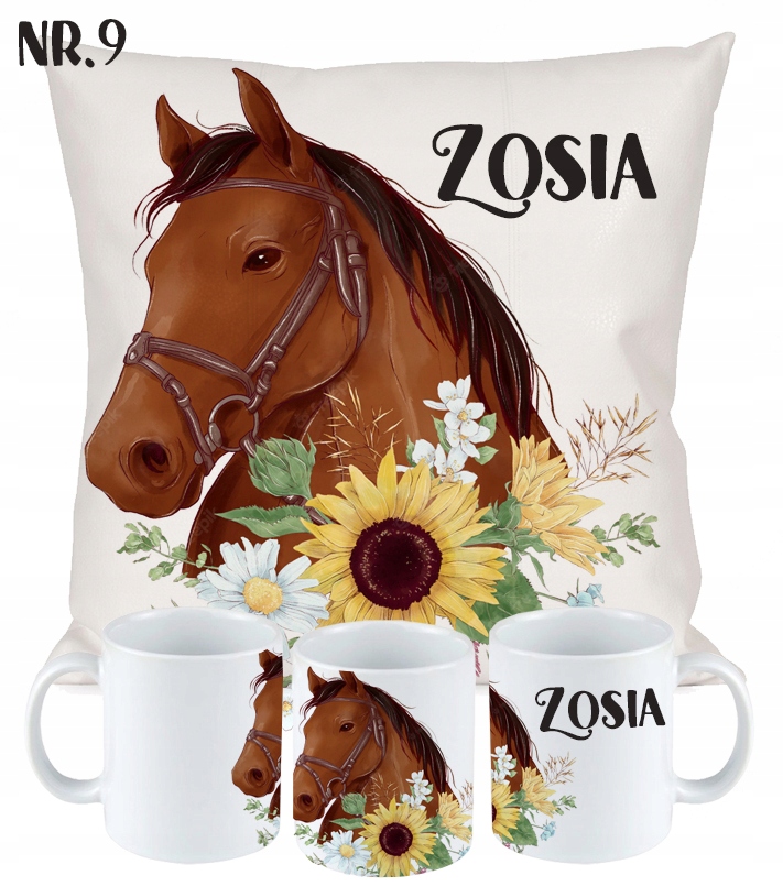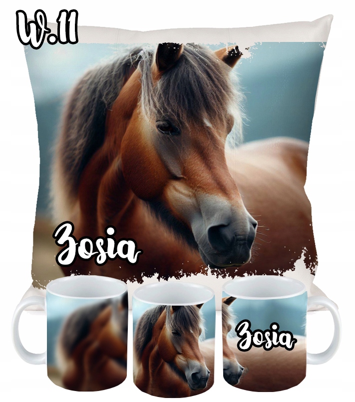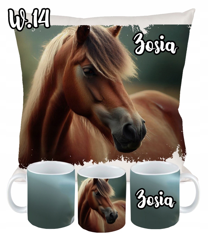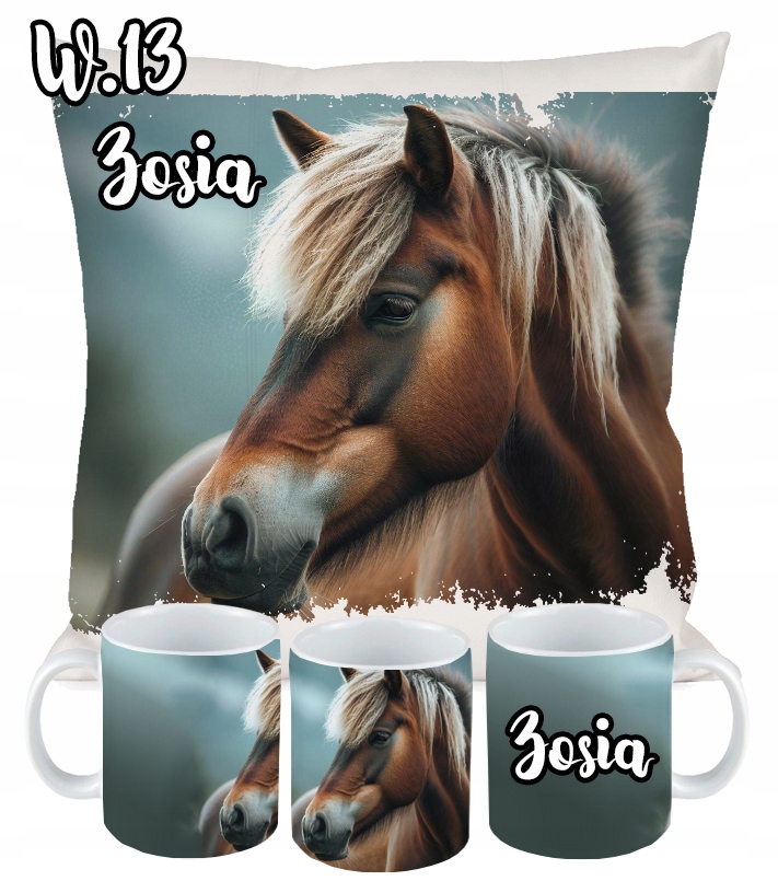 Set Pillow Cup Corses Horses Pony Konik для детского подарка + имя