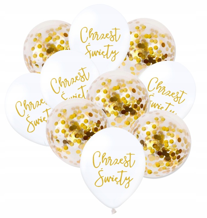 - 10 белых пастельных шариков с золотым принлом святым крещением.