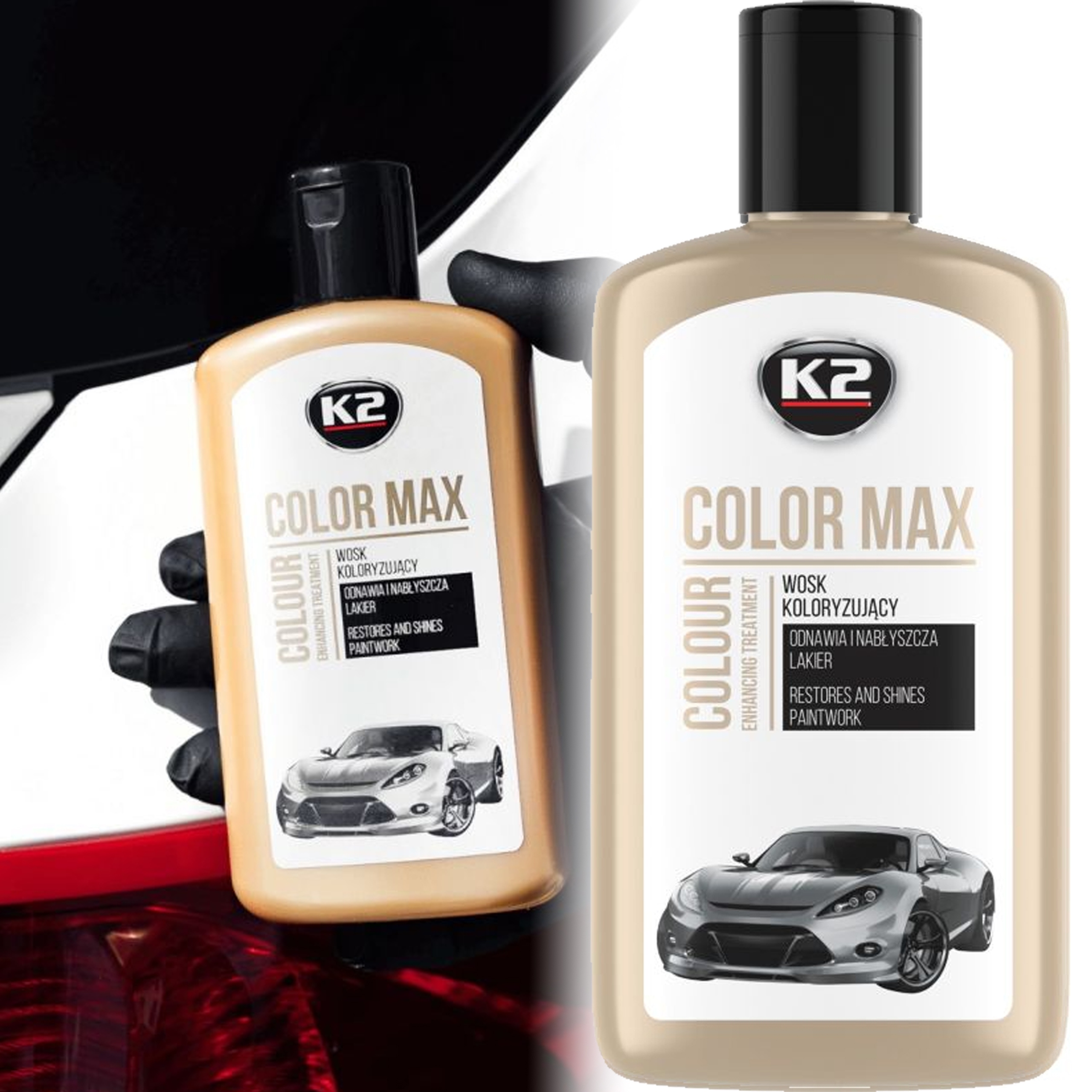 🔹 k2 Цвет макс белые лаки. Благодаря содержанию естественного воска, Carnauba восстанавливает глубину цвета и придает поверхности интенсивный блеск.