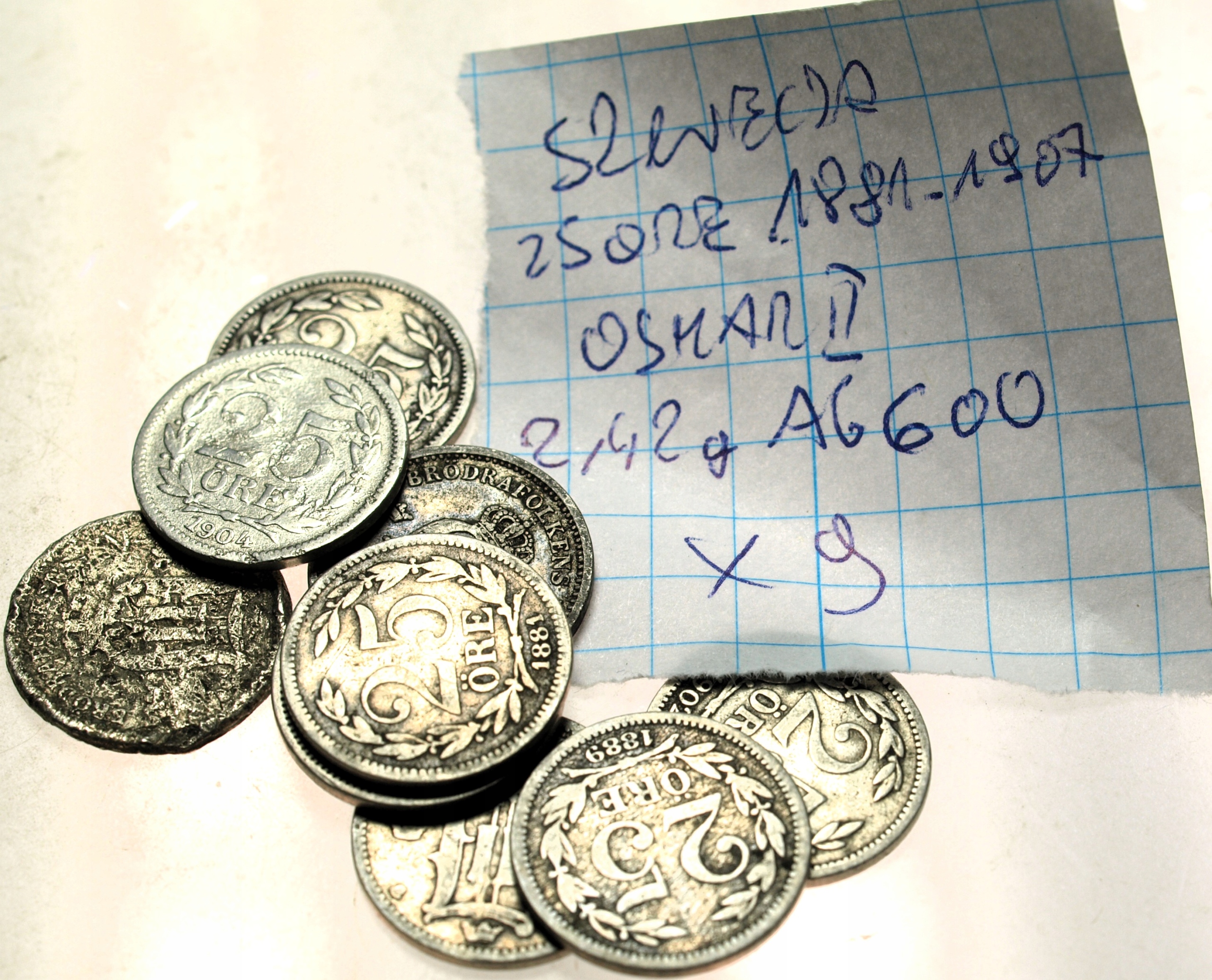Установить Швецию 9x 25 Руду 1881-1907 ОСКАР II Серебро. Оригинал Проверьте другие аукционы - Соберите редкие значения с Numismrato!