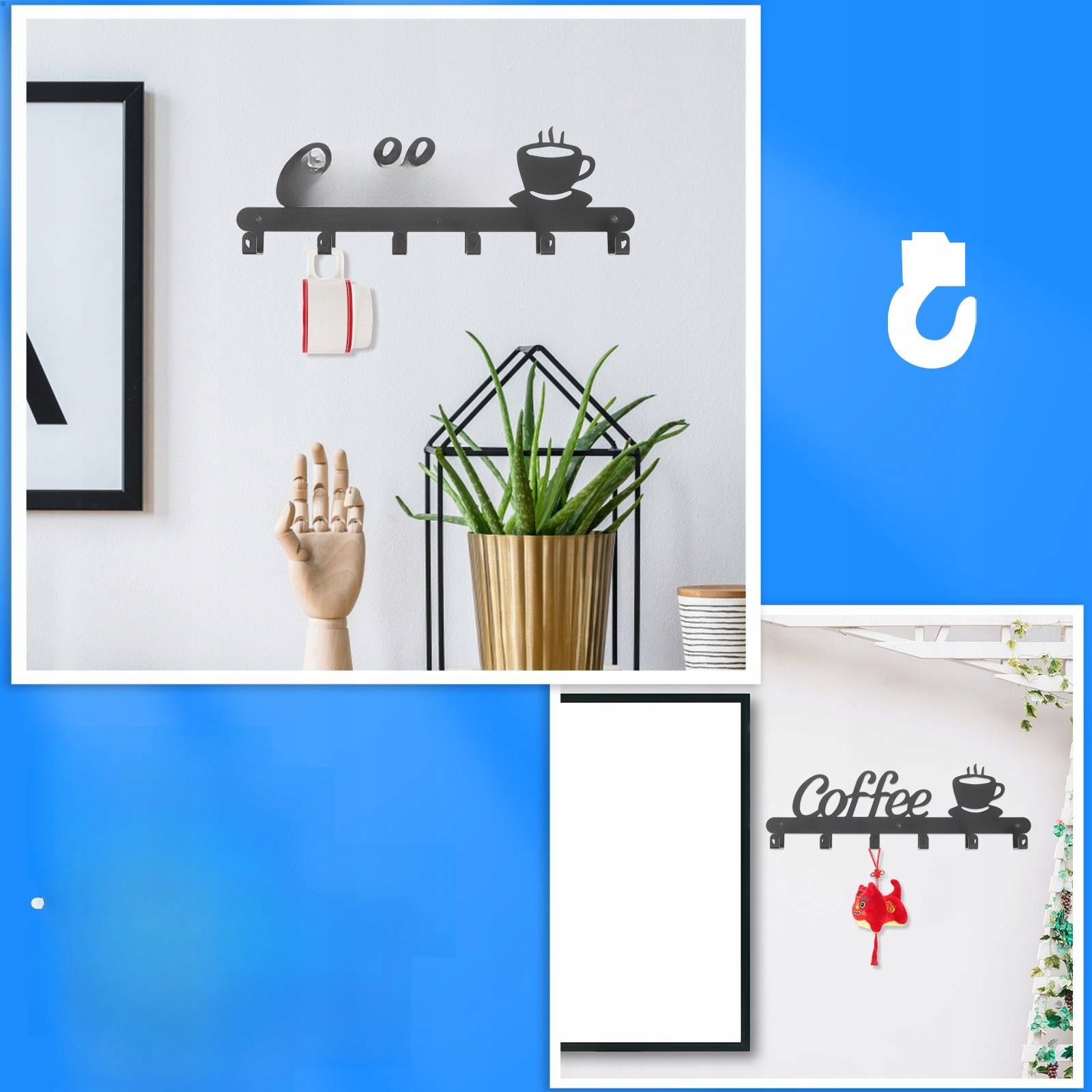 Установите чашки на стенах хранения вешалки для хранения хранения