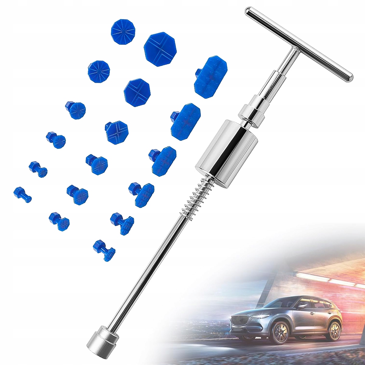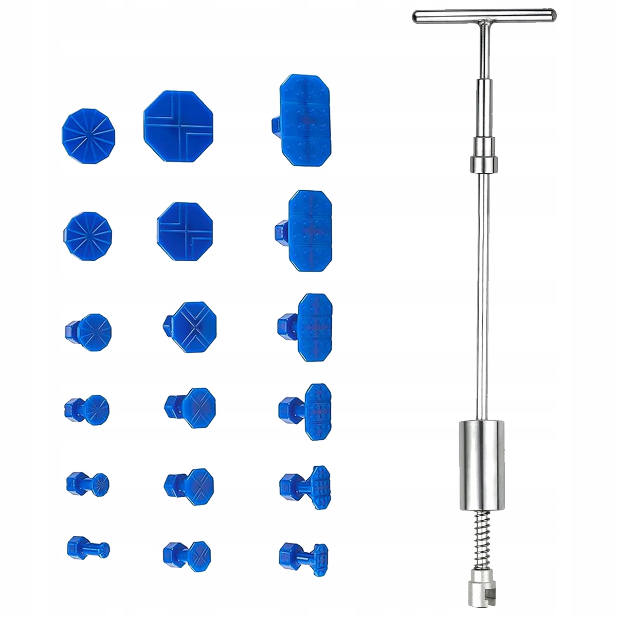 Высококачественный материал: скользящий молоток для удаления вмятин с помощью T -обратной стержни из нержавеющей стали. Все 18 синих самостоятельных закладок сделаны из чрезвычайно прочного пластика. Инструменты для удаления вмятины идеально подходят для удаления вмятин в организме и повреждения, вызванного градом. Идеальный инструмент для автомобильного кузова грузовых автомобилей, легковых автомобилей, мотоциклов, холодильников, дверей и т. Д. Инструмент для удаления вмятин легко использовать для взрослых. Большинство вмятин можно отремонтировать через полчаса. Сэкономьте много денег и времени, чем посещение автомобильной мастерской. Чтобы избежать повреждения исходной краски внутри корпуса, следует использовать резиновое уплотнение высокого качества (палочки с горячим клеем не включены)