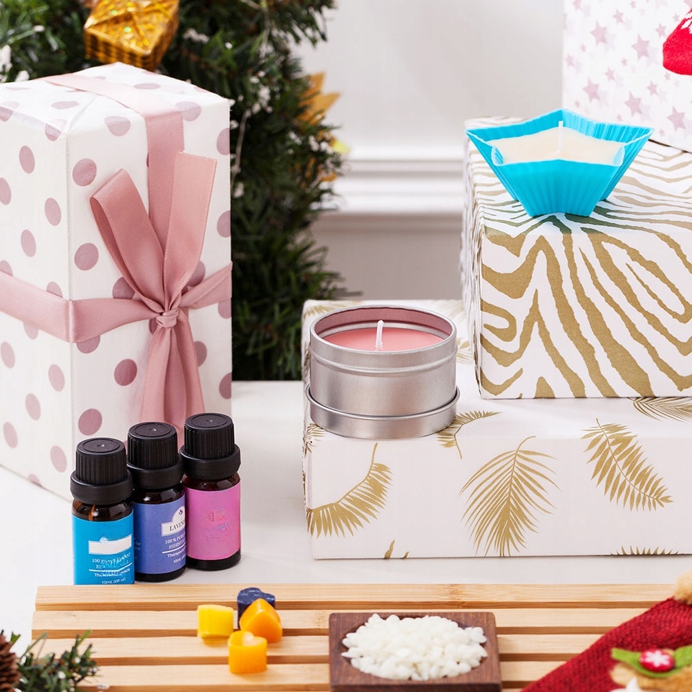 🌈1 x cup 2 x соевый восковой пакет 1 x ложка 4 x can 1 x листы хлопковых наклеек.