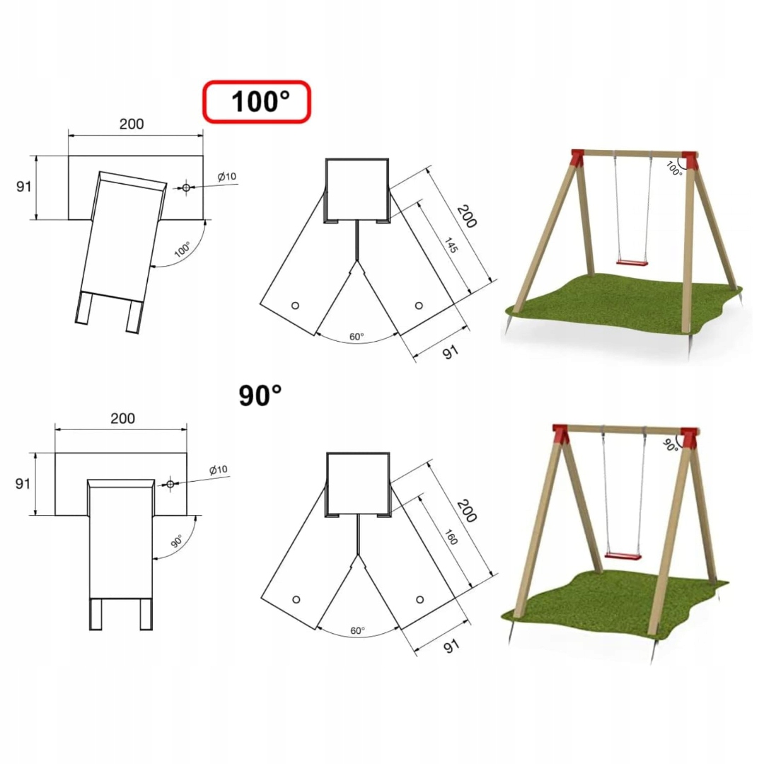 Благодаря этим соединителям поворотная рама собирается эффективно и очень легко. Вам не нужно обладать особыми техническими навыками. Все, что вам нужно, это отвертка, несколько деревянных балок и кто-то, кто вам поможет, и вскоре вы будете наслаждаться поворотной рамой. Разъем 100° обеспечивает более широкое расстояние между ножками. Такая конструкция более устойчива, но требует больше места.
