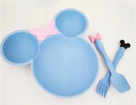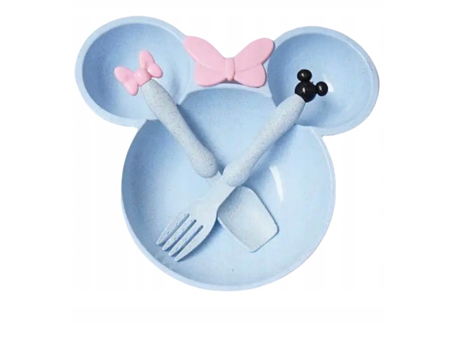Установить тарелку плюс столовые приборы для детей синего цвета