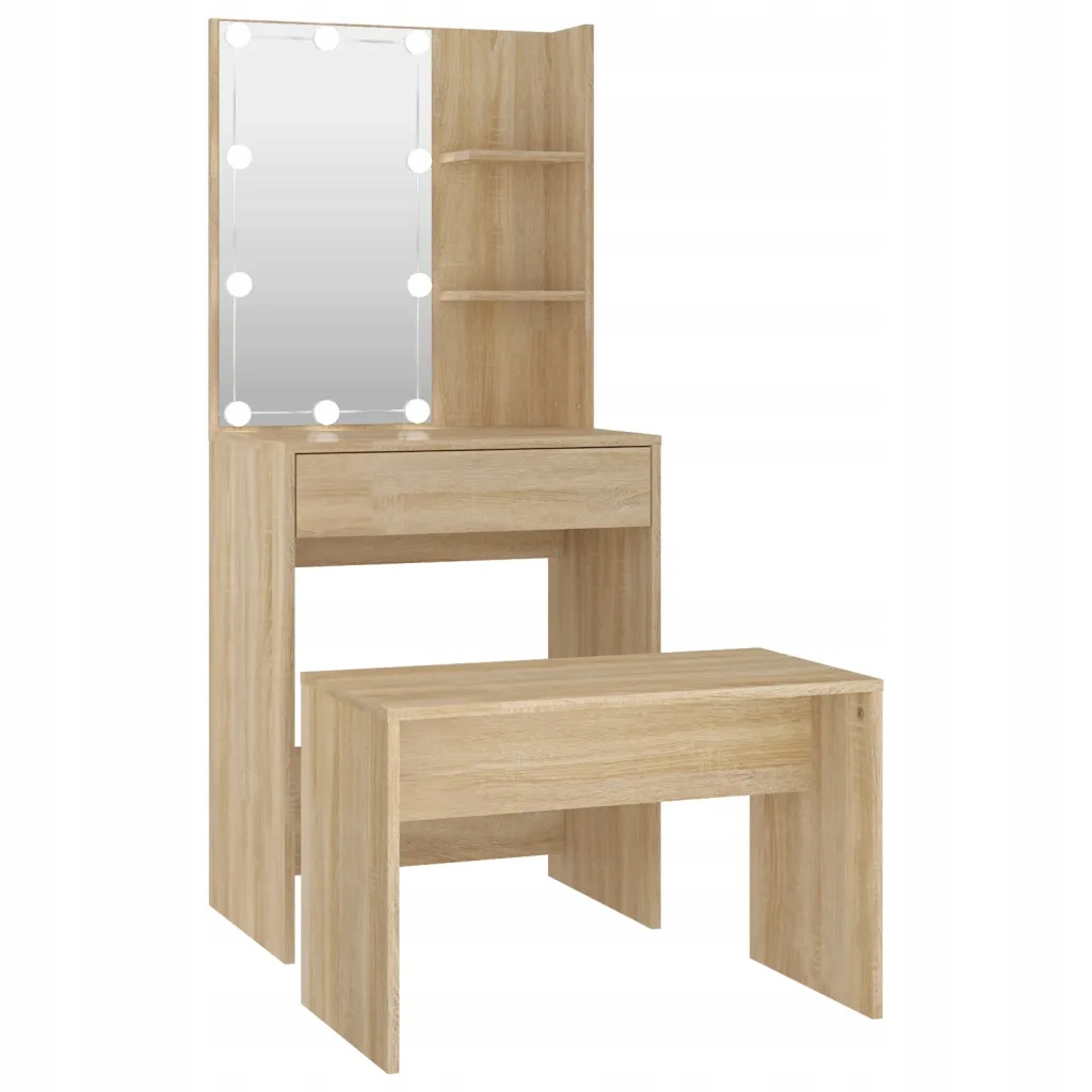 Набор с туалетным столиком и светодиодным освещением, дуб Sonoma