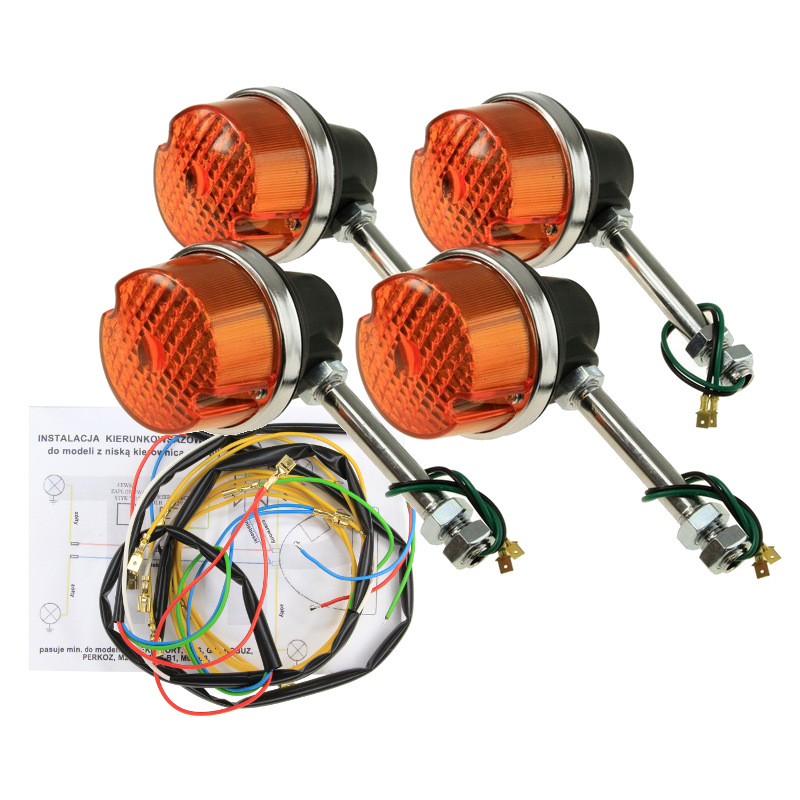 ПЕРЕДНИЕ ПОВОРОТНИКИ (2 шт.) ЗАДНИЕ (2 шт.) С ИНСТРУКЦИОННЫМИ ЛАМПОЧКАМИ + ЭЛЕКТРОУСТАНОВКА ПОВОРОТОВ ДЛЯ МОДЕЛЕЙ С НИЗКИМ РУЛЕМ