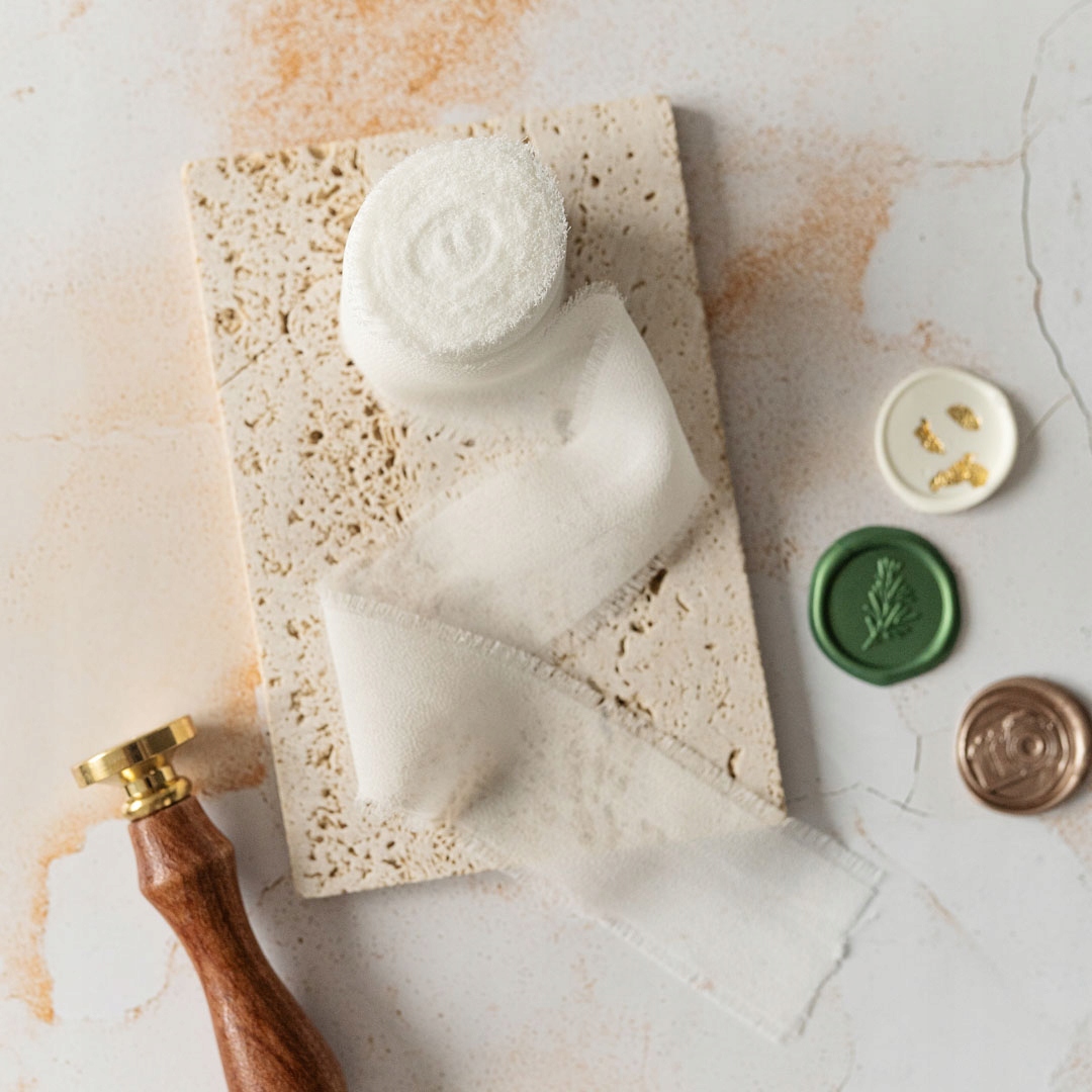 Установка ленты ручной работы на приглашения 4,5 см белый