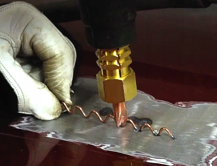 мы нагреваем гофрированную проволоку, используя электрод, включенный в набор, и с помощью когтя мы вытаскиваем вмятин.