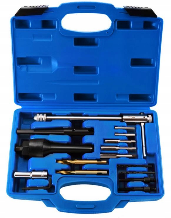 Специальный набор для ремонта резьбовой гнезда Glow Scocke (неверно проводящиеся после разрыва свечи или его потока в голове). Пассажирские автомобили и фургоны, такие как: Audi, VW, Mercedes, Ford, Opel, Skoda, Peugeot, Renault, Seat, Iveco и многие другие. Мы рекомендуем профессиональную сборку квалифицированным сотрудником. Allen Key