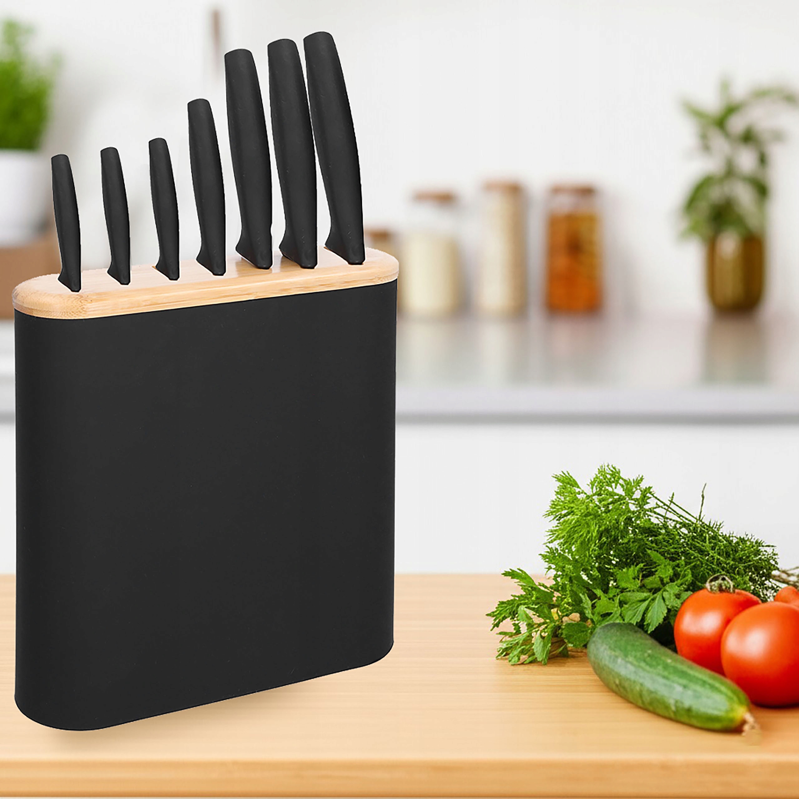 Благодаря 7 явно отделенным местам подставка будет разместить наиболее часто используемые кухонные ножи. Это обеспечивает быстрый доступ к соответствующему инструменту и упорядоченному хранилищу.
