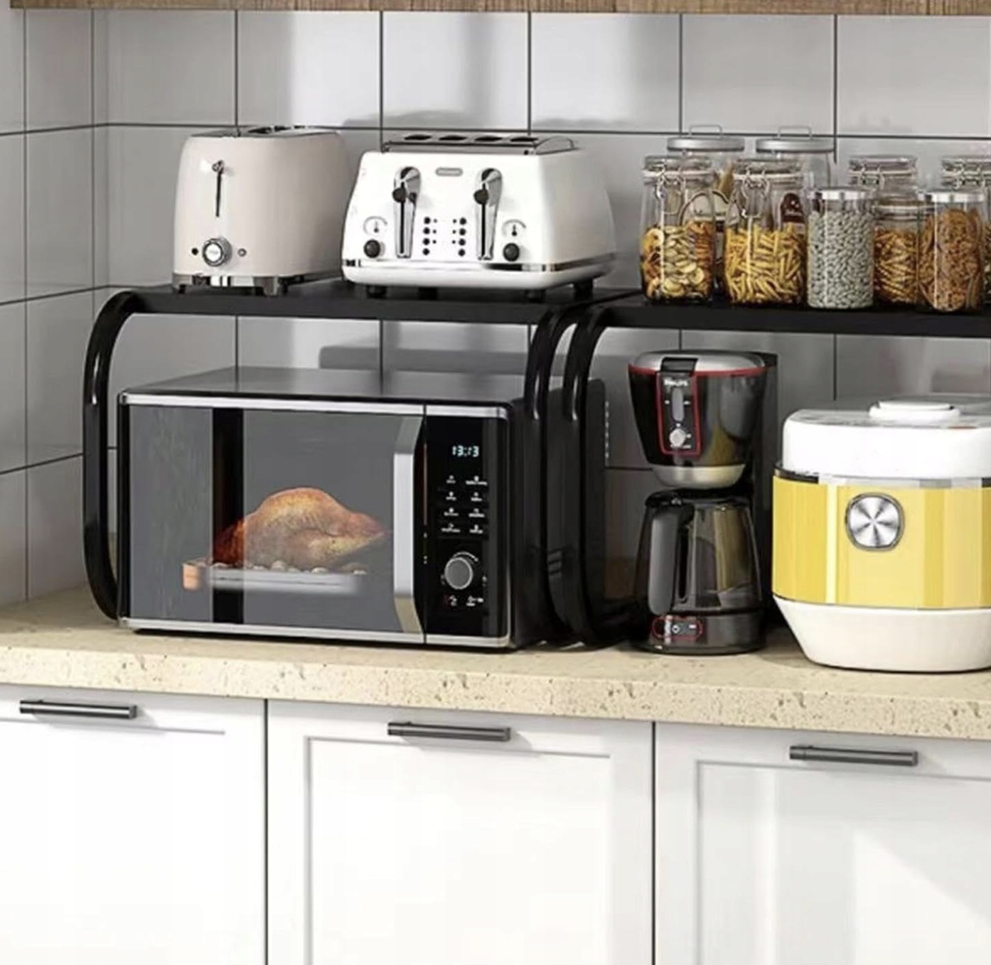 > Микроволновая стойка Организатор кухонный организатор черная складная полка h2>