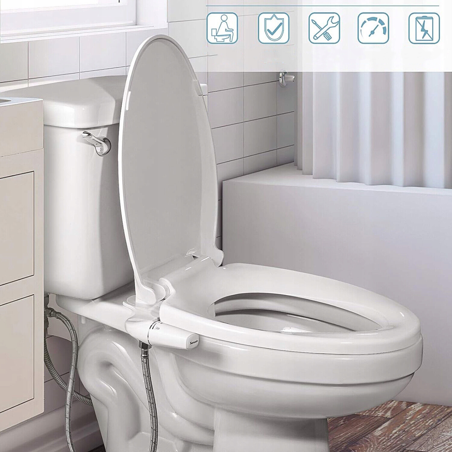 ✅【Тонкий и прочный】 Тонкая вставка для биде для унитаза толщиной 0,19 дюйма. Уникальный дизайн обеспечивает поддержку, удерживает сиденье унитаза на ровном месте и более удобно помещается в стандартные унитазы. Насадка для биде расположена под углом вверху, создавая зазор в крышке унитаза, что предотвращает повреждение насадки внешними силами.