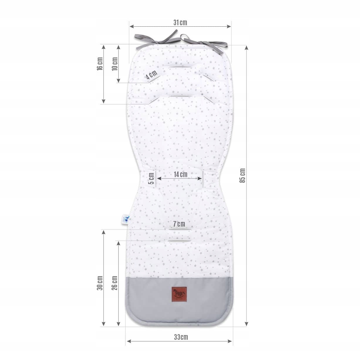Расположение отверстий стандартное, поэтому вставка подходит для большинства колясок и автокресел типа «люлька». Вшитые лямки позволяют привязать вставку к раме коляски, предотвращая ее перемещение во время использования.