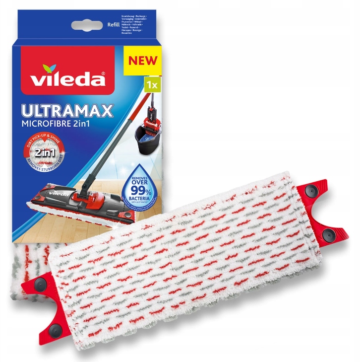 Насадка для швабры Vileda UltraMax идеально подходит для чистки всех твердых поверхностей пола, таких как дерево, керамическая плитка, ламинат и паркет.
