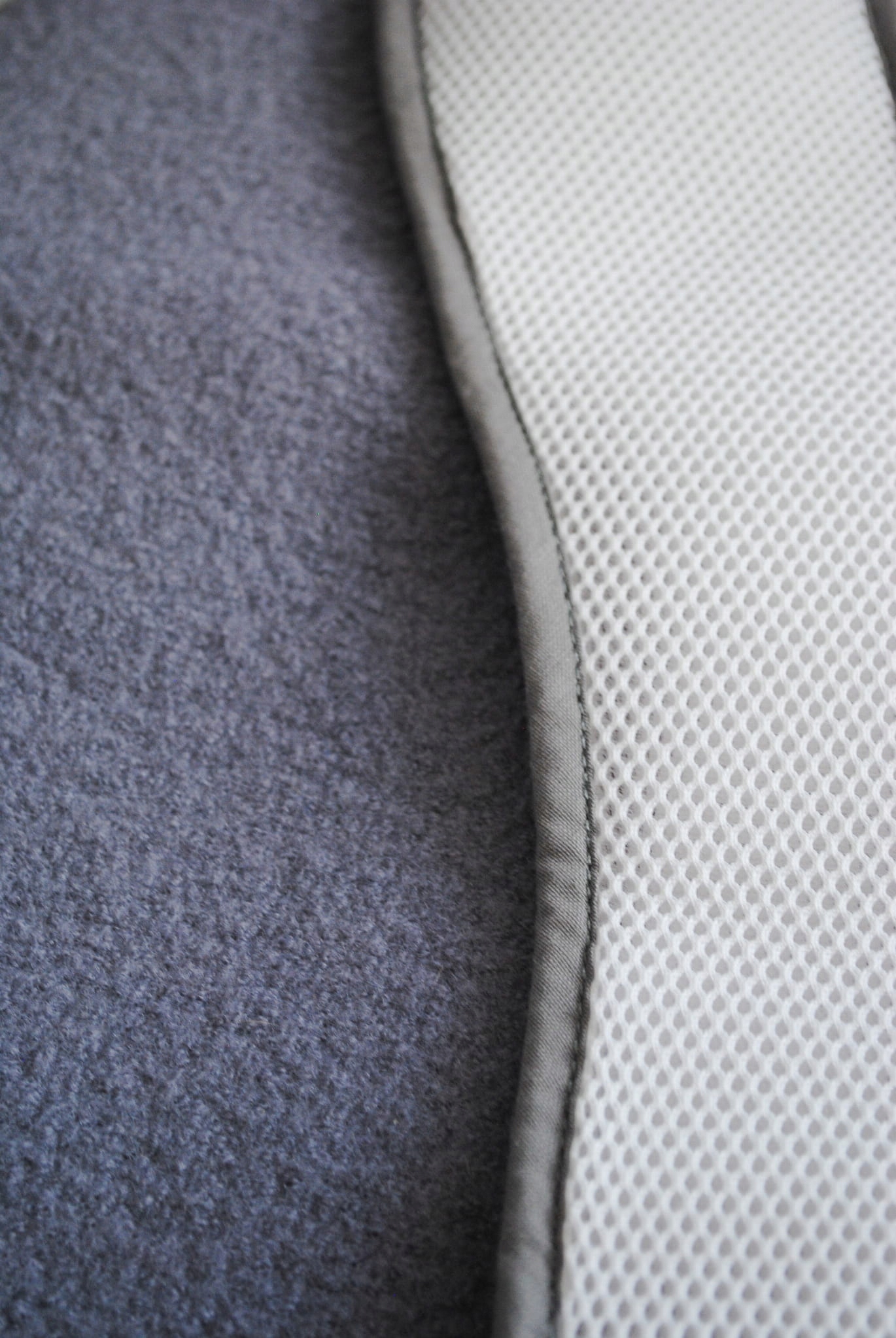 Вставка выполнена из двух частей материала, верхняя часть - нежная мериносовая шерсть, нижняя часть - сотовая сетка, который дополнительно прекрасно регулирует поток воздуха между сиденьем и спиной и попой ребенка.