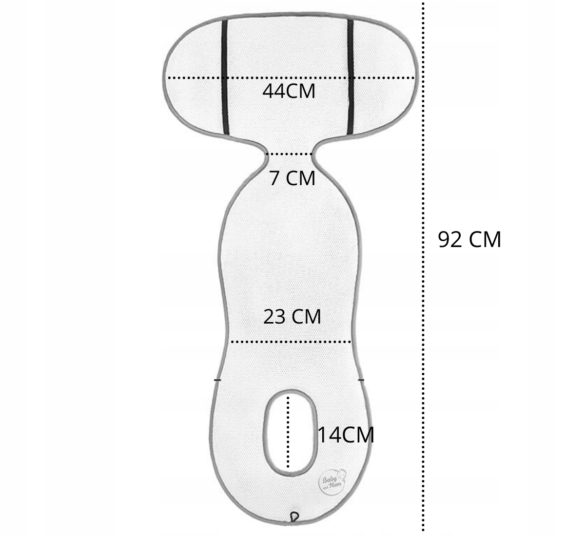 Вставка выполнена из двух частей материала, верхняя часть - нежная мериносовая шерсть, нижняя часть - сотовая сетка, который дополнительно прекрасно регулирует поток воздуха между сиденьем и спиной и попой ребенка.