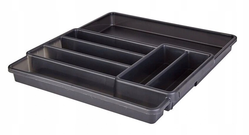 Функциональная вставка с 7 камерами необходима на каждой кухне. Теперь вы легко сможете контролировать порядок в каждом кухонном ящике. Семь вместительных отделений позволят легко разместить как столовые приборы, так и другие кухонные принадлежности. Кроме того, отделение с правой стороны выдвигается, благодаря чему можно подогнать вставку под более широкие ящики и получить одну более широкую камеру.