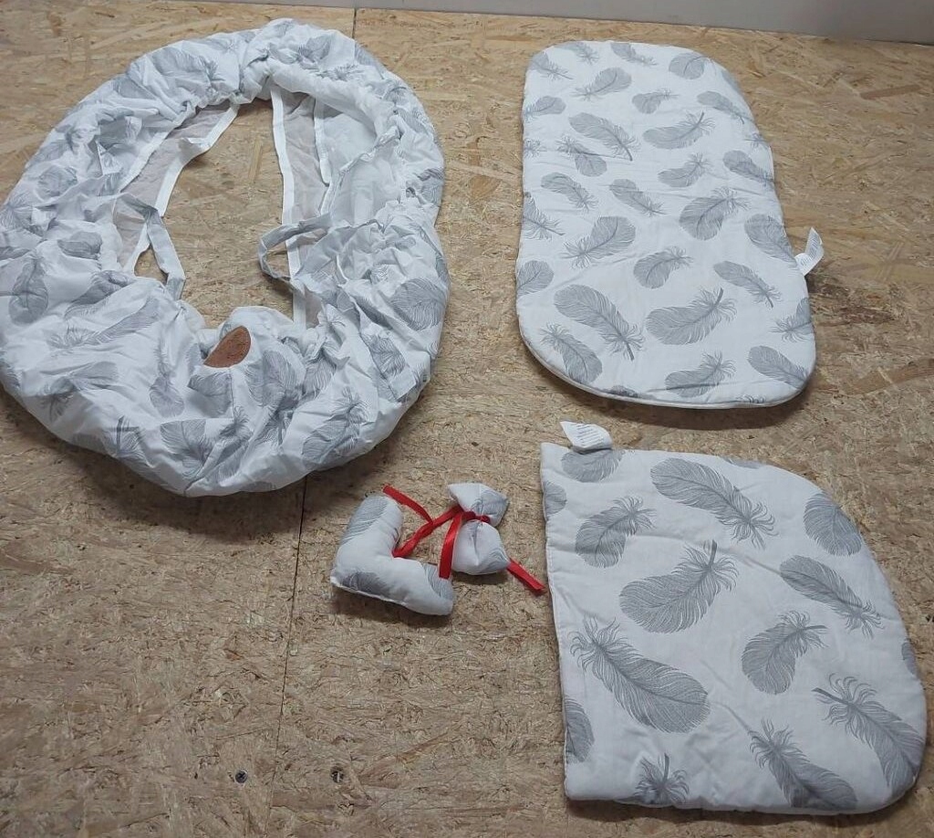 <р> Набор 3-в-1 с красивым узором из серых перьев — предложение для родителей, которые ценят комфорт, безопасность и эстетику.Мягкая вставка для гондолы
