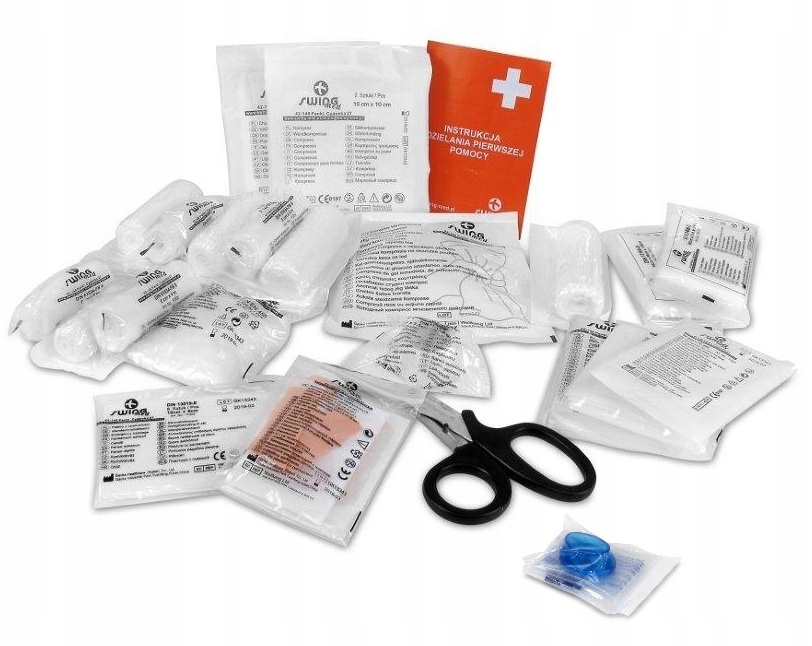 Вкладыш для аптечек. Состав согласно европейскому стандарту DIN 13157 (дополнительно загубник/маска для искусственного дыхания).