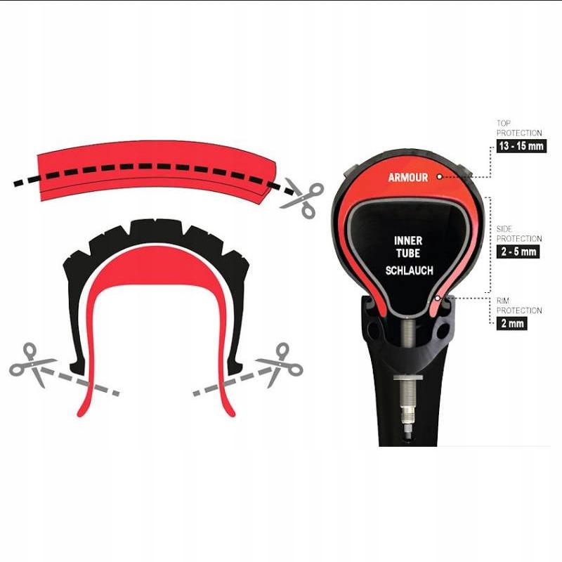 Между шиной и внутренней камерой и вокруг нее установлен слой легкой пены. внутреннюю трубку до основания обода. Броня Tannus обеспечивает защиту почти на 360° от стекла, шипов и острых камней.