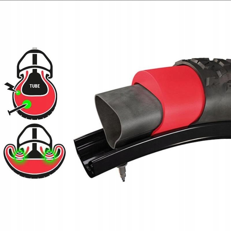 Для горных велосипедов: однако Tannus рекомендует снизить давление воздуха примерно на 0,4 бар по сравнению с бескамерными системами и примерно на 0,7 бар по сравнению со стандартными трубчатыми системами.
