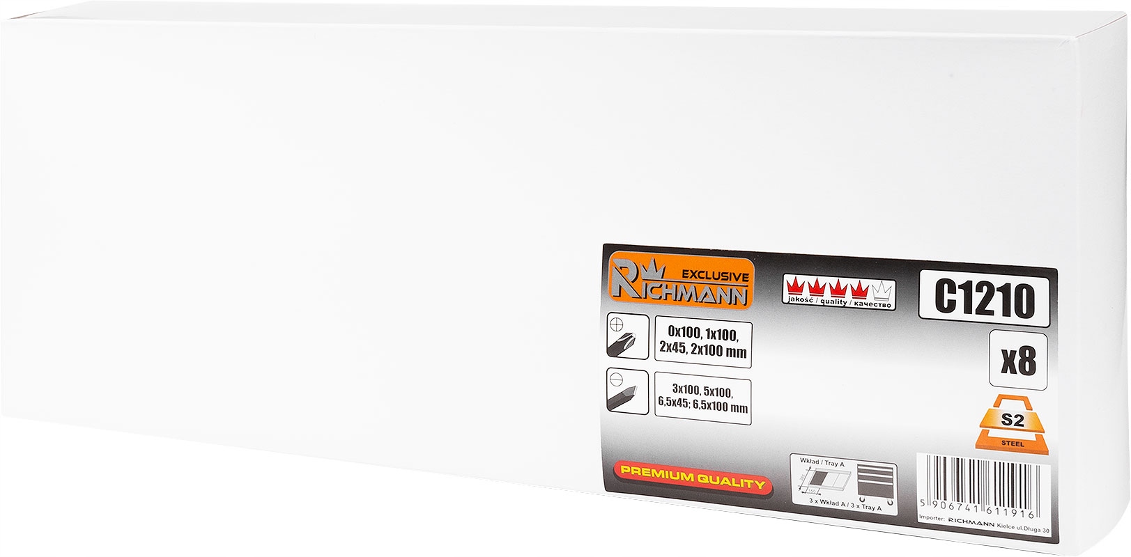 Набор из 8 ручных магнитных отверток, помещенных во вставку для мастерской тележки типа А.