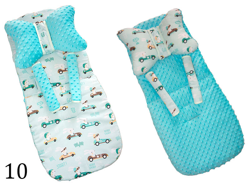 Предлагаем Вам комплект, в который входит матрас - вкладыш в коляску с подушкой - бабочка и чехлы на ремни. Сделано с необычайной тщательностью и вниманием к деталям.
