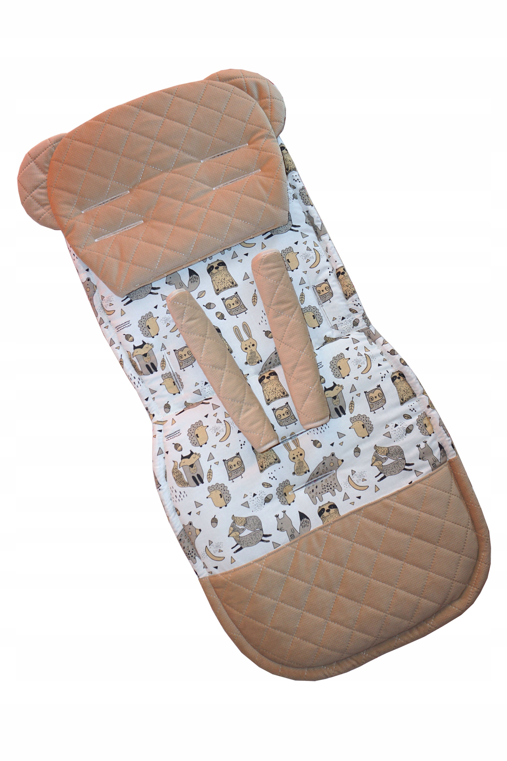 В комплект также входитподушка с ушками и чехлы для ремня коляски,