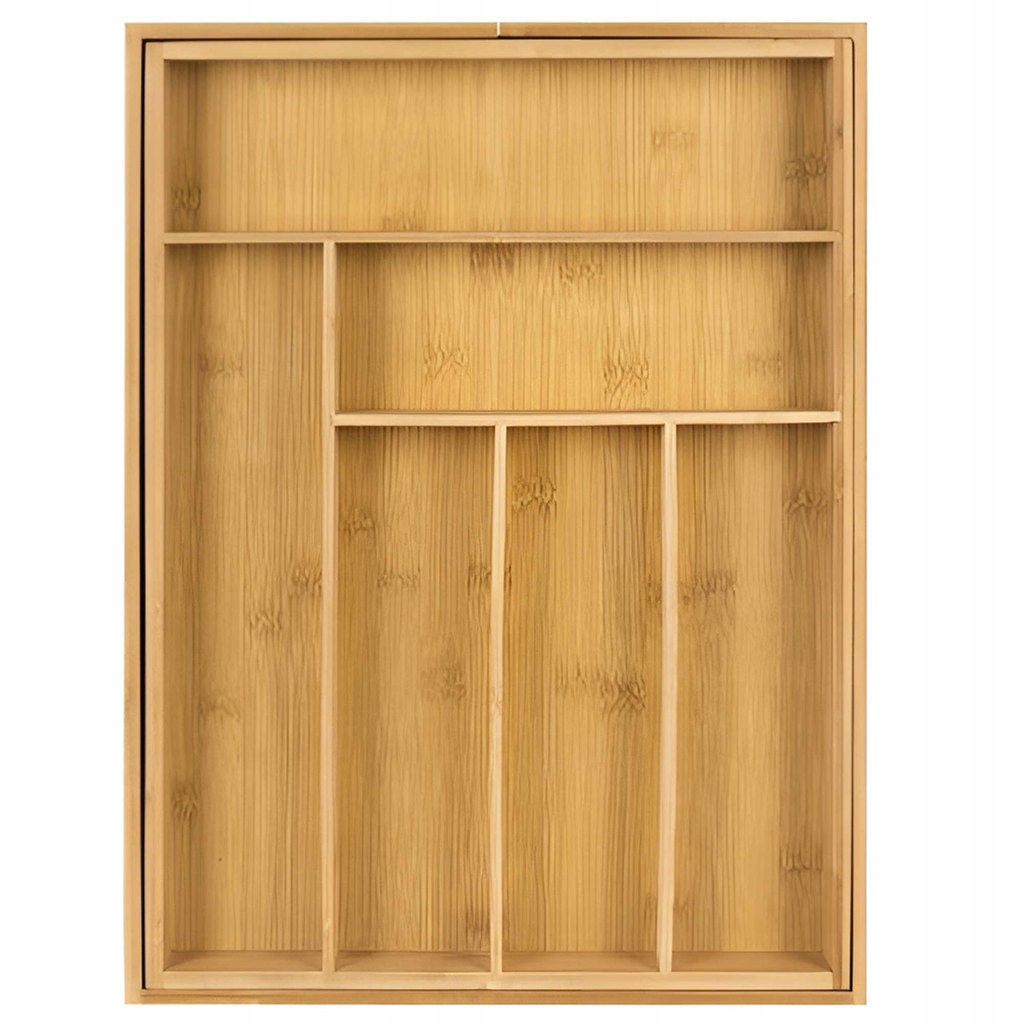 - Спецификация - Материал: Бамбук; Регулировка ширины: да; Количество отсеков: 6 или 8; Сложные размеры: 33,5/45,5/5 см; Размеры распределенного: 50/45,5/5 см; Вес: 1,661 кг; Вес в упаковке: 1,828 кг.