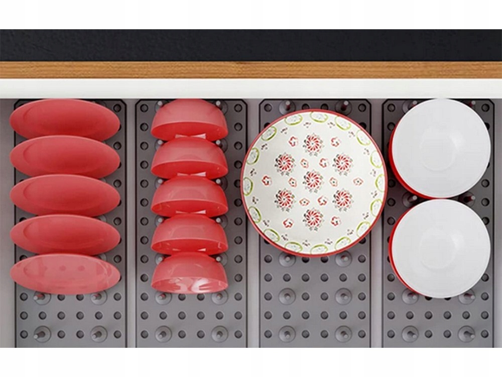 Организатор предназначен для кухонных ящиков. Благодаря этому горшки, тарелки, контейнеры и другие кухонные аксессуары можно хранить в идеальном порядке