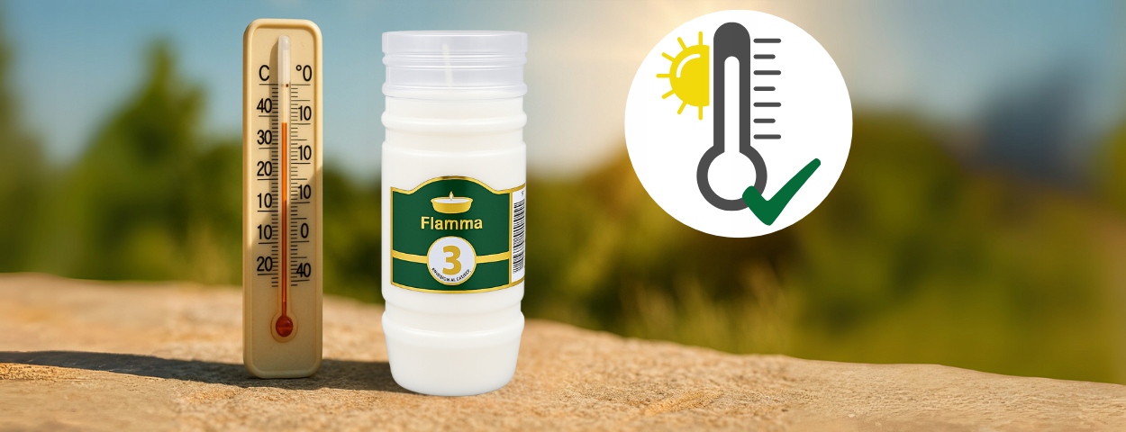Вставки Flamma рассчитаны на работу даже в жаркие дни — протестированы при температуре до 30°C и выше. Идеально подходит для летнего посещения кладбища.