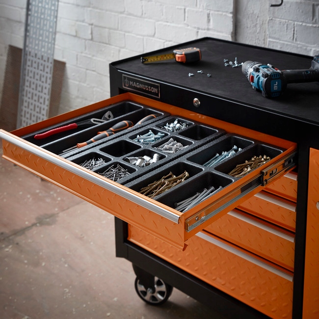 Используете ли вы шкафы и тележки для инструментов Magnusson? Если у вас проблемы с поддержанием порядка, вас могут заинтересовать вставки для ящиков Magnusson. Они были созданы для создания удобного места для небольших инструментов и других металлических элементов – винтов или гаек. Вставки доступны в различных размерах. Они изготовлены из прочного пластика. Вставки для ящиков Magnusson идеально подходят как для автомастерских, так и для гаражей своими руками. В таких местах необходимы удобные места для организации мелких элементов или инструментов. Если вы цените порядок, вам следует рассмотреть возможность приобретения предлагаемого продукта.