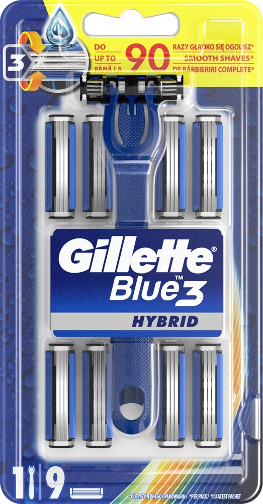 В комплект гибридной бритвы Blue3 входит одна ручка и 9 сменных картриджей