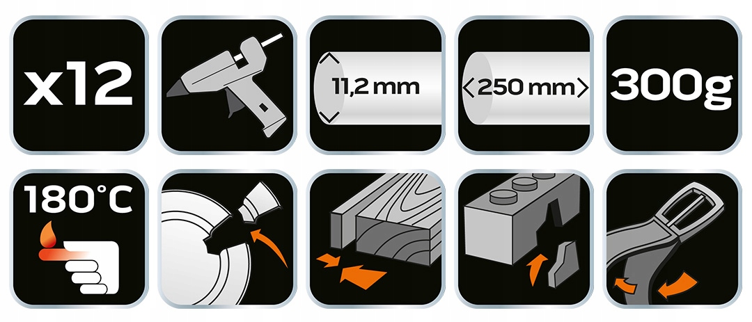 Клеевые картриджи 11 мм, черные, 12 шт. 17-173 от NEO – это гибкие и удлиненные картриджи для клеевых пистолетов. Предлагается в сборной упаковке по 12 штук. Они рекомендованы для универсального использования (дома, в мастерской или столярной мастерской). Вставки имеют ширину 11 мм и длину 250 мм. После нагревания и использования они остаются черными, что сводит к минимуму следы соединения элементов этого цвета. Рекомендуется для использования с устройствами NEO и GRAPHITE.