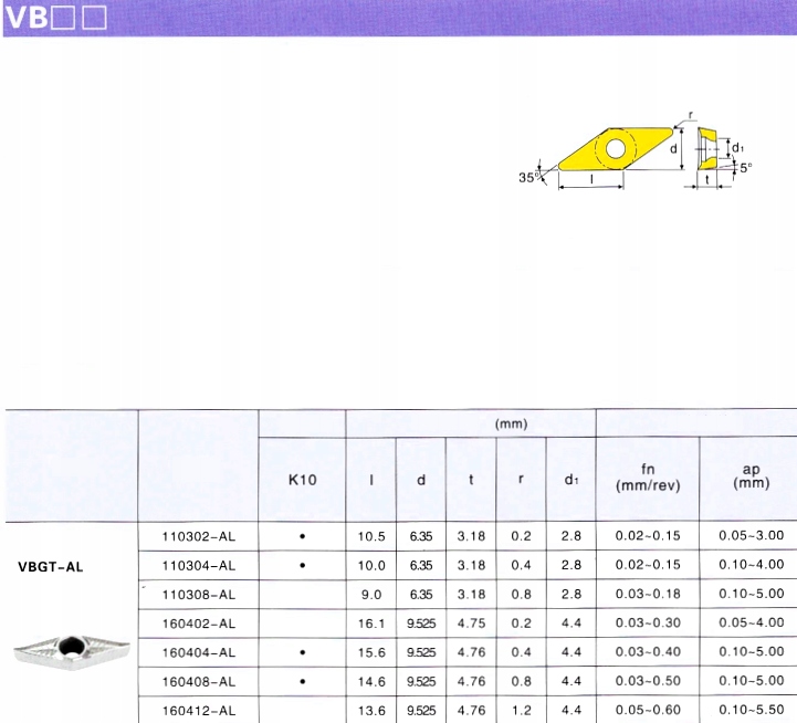 Вставки з кількома лезами VBGT 110304 MO AL K10 ДЛЯ КВАСЦІВ