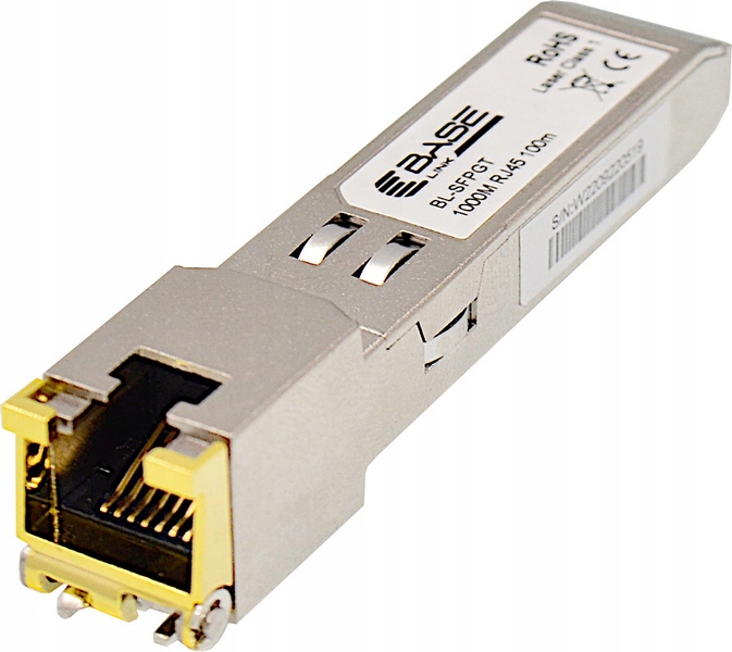 Модуль SFP RJ-45 Base Link BL-SFPGTN представляет собой полностью электрический модуль, предназначенный для установки в устройства, оснащенные портом SFP. Для передачи данных используется четырехпарный витая пара минимум класса D (кат. 5e), заканчивающаяся разъемом RJ-45.