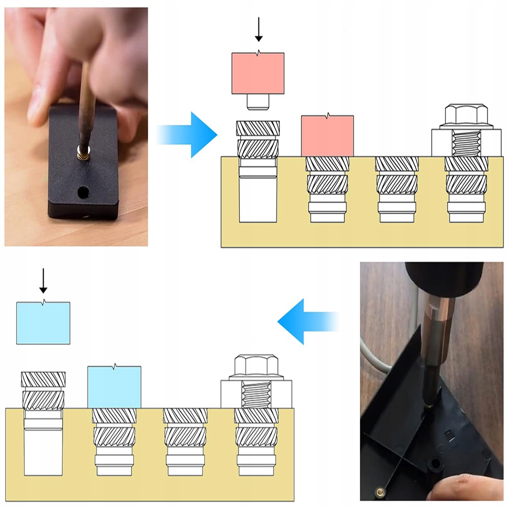 【широко использование】 - эти вставки предназначены для использования со всеми термопластичными пластиками, включая такие материалы, как PLA, PETG, ABS, PPS, PP и другие. Независимо от того, устанавливаете ли вы их на 3D -печатные помещения, пластиковые детали, сформированные инъекцией, пластиковые автомобильные корпусы или корпуса ноутбука, эти вставки предлагают надежные и длительные решения.