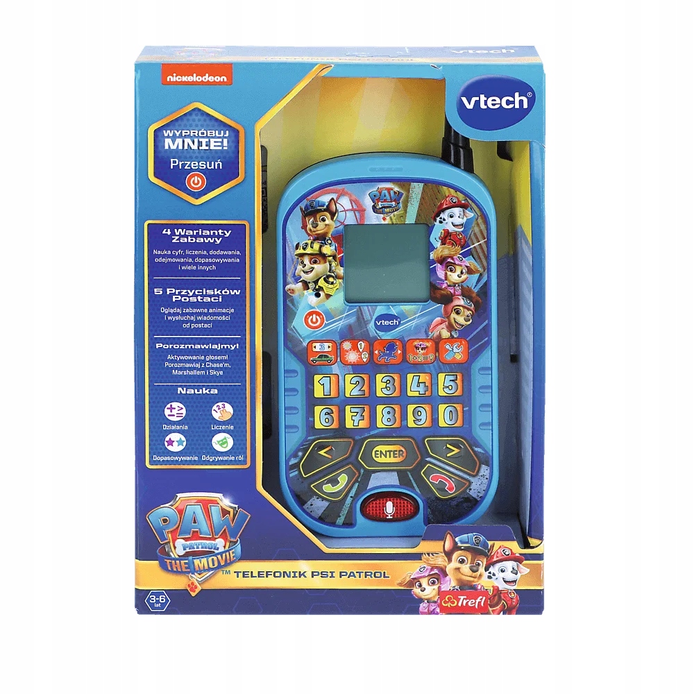 Интерактивный телефон Paw Patrol от VTech® — это интерактивная игрушка-телефон, предназначенная для детей от трех лет. Содержит четыре обучающие игры. Он играет и учит со своими любимыми персонажами из мультфильма «Щенячий патруль»! Telefonik призывает детей подражать взрослым и играть роли. Игрушка имеет 5 кнопок с персонажами Щенячьего патруля и 10 с цифрами. С помощью функции изменения настроек вы сможете адаптировать телефон под свои нужды. Пришло время позвонить друзьям!