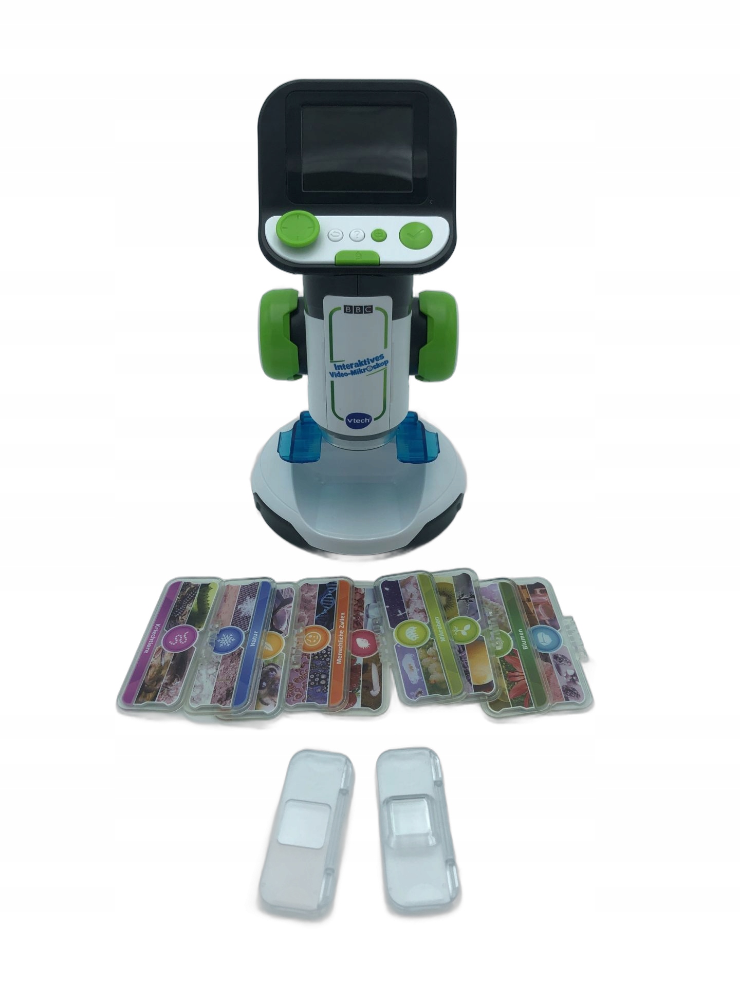 9 двусторонних интеллектуальных носителей с 18 категориями 240 видеороликов и фотографий BBC и более 400 пояснений по многим темам, таким как: B. Растения, клетки, одежда животных на экране