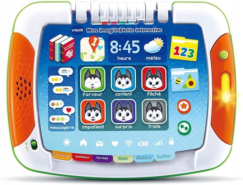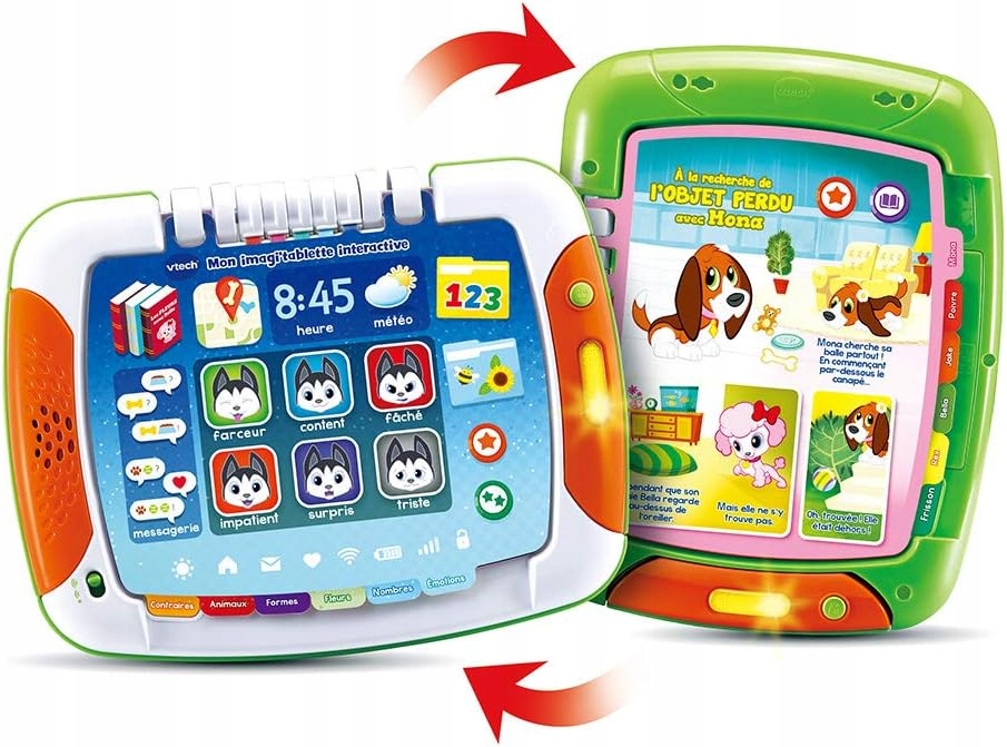 Интерактивный планшет Mon Imagi ' - это интерактивный планшет, который превращается в историческую книгу, рекомендуемой для детей в возрасте от 2 до 5 лет. Концепция 2 в 1, чтобы свергнуть доску деятельности в книге истории! В режиме планшета: 14 кнопок для обнаружения и изучения различных тем. В историческом книжном режиме: чувствительный, который может быть обнаружен в ходе различных историй. Кнопка подсветки, которая включена в обе настройки, запускает песни и наборы в разных категориях. 6 страниц истории и 6 дополнительных страниц с деятельностью для богатой и всеобъемлющей программы: - Учебные слова и чтение - числа обучения - эмоции - цвета и формы - Наука и природа - Другие слова - работает с 2 батареями LR06 (включая). Полем Полем