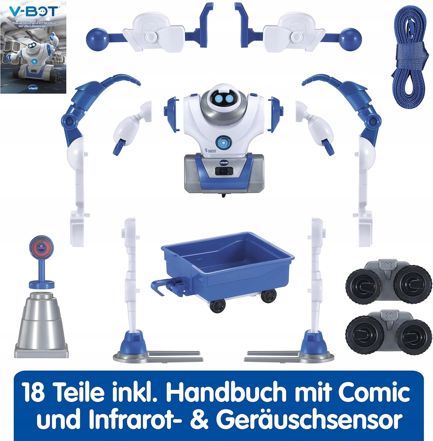 vtech v-bot-это инновационный образовательный набор, который объединяет веселье С наукой, предлагая детям в возрасте от 5 до 12 лет возможности построить и персонализировать свою собственную работу. Благодаря 17 элементам, различным функциям и возможностям выполнения захватывающих миссий V-Bot вдохновляет творчество, развивает ручные навыки и знакомит с детьми в мир технологий