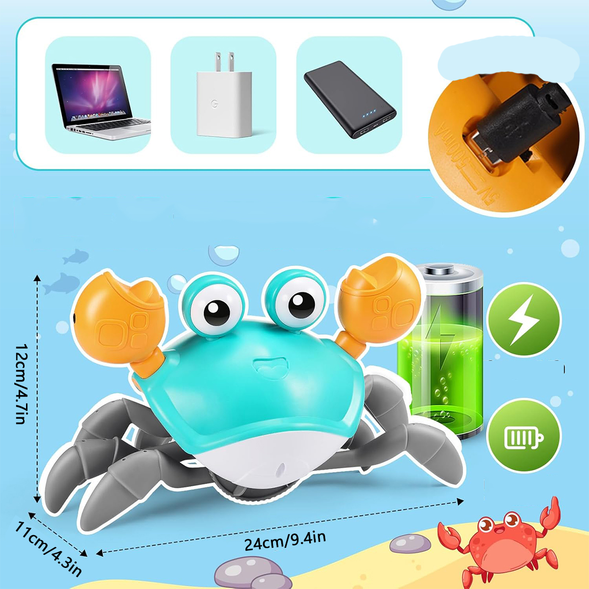 Улучшенный порт зарядки USB-углеводов. После 2,5 часов зарядки краба игрушка может работать непрерывно в течение 40 минут. Набор включает в себя кабель зарядки типа C USB. Убедитесь, что игрушка выключена при зарядке.