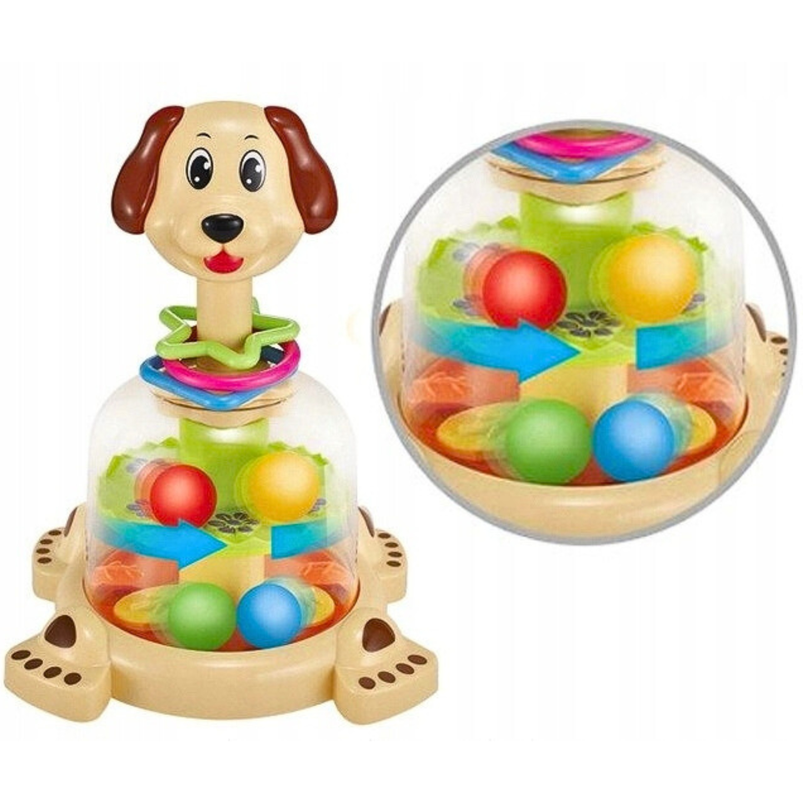 - Spinner Toy - нажимая голову собаки, ребенок превращает красочные шарики в движение, создавая вращающийся эффект, который привлекает глаз. Дружественные - привлекательные, яркие цвета побуждают малыша играть, стимулируя чувство зрения.