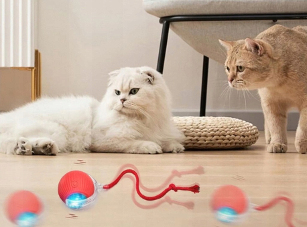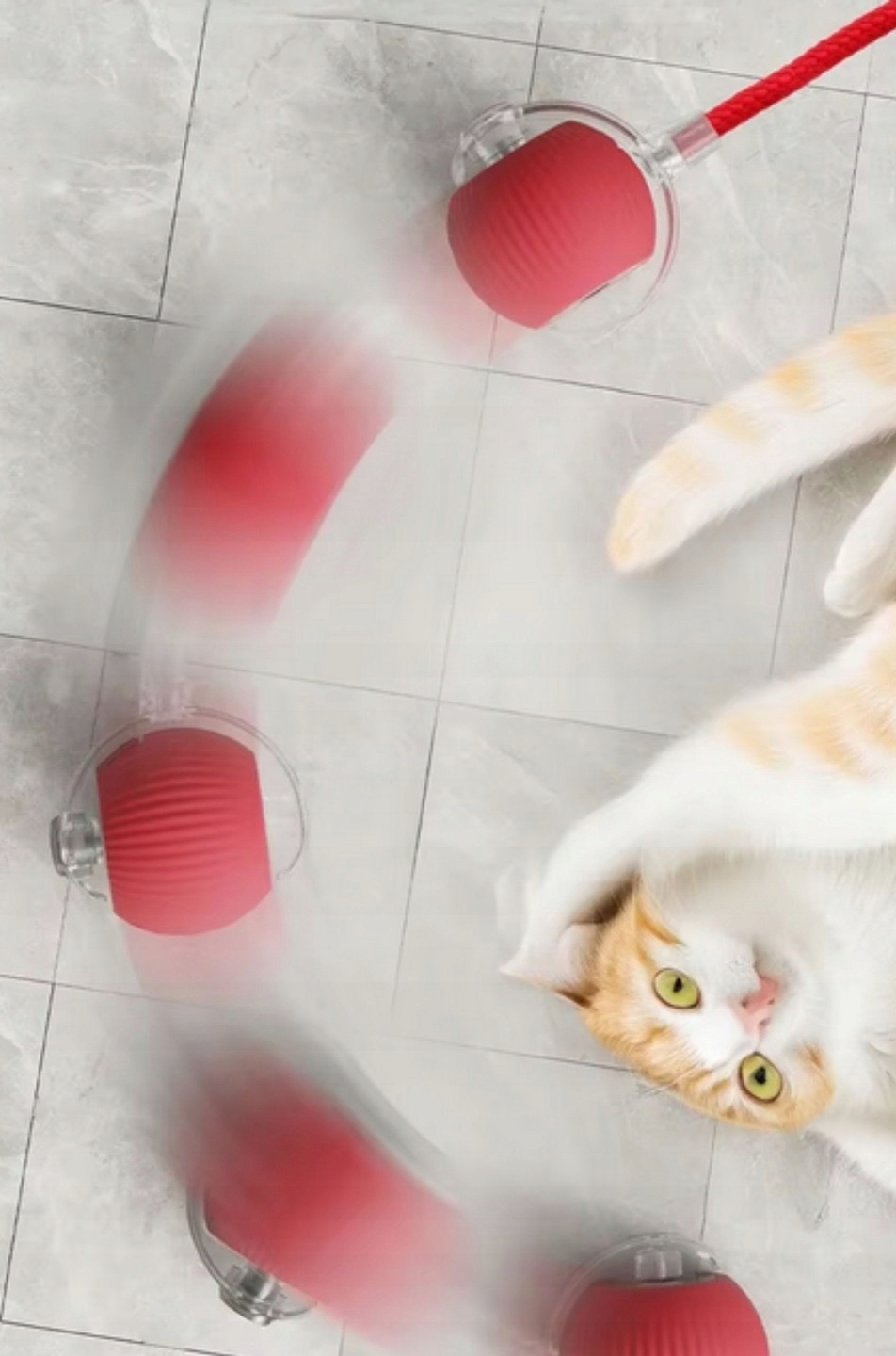 ✅ Интерактивные движения: Мяч движется и вибрирует, меняя направление, что побуждает питомца преследовать его.