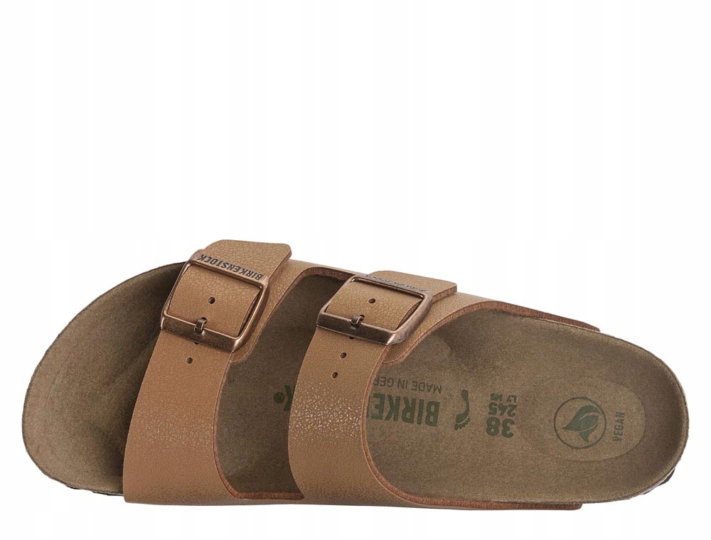 Birkenstock Arizona — одна из разновидностей популярных сандалий Birkenstock. Данная модель отличается современным дизайном и экологически чистым исполнением. Сандалии изготовлены из веганских материалов, то есть не содержат кожи и других продуктов животного происхождения. Материал Birko-Flor, из которого изготовлен ремень, устойчив к истиранию и легко чистится. Стелька из пробки и латекса, характерная для бренда Birkenstock, обеспечивает комфорт при ходьбе, поскольку адаптируется к форме стопы. Резиновая подошва из этиленвинилацетата легкая и гибкая, обеспечивает хорошее сцепление с различными поверхностями.