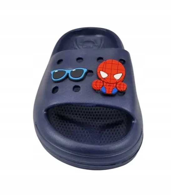 Детские шлепанцы для бассейна. Шлепанцы очень легкие и мягкие, поэтому их удобно носить в течение всего дня. Противоскользящая подошва гарантирует безопасность на мокрой поверхности, сводя к минимуму риск поскользнуться. Благодаря этому ваш ребенок может свободно бегать и играть. Шлепанцы также водонепроницаемы и легко чистятся — достаточно промыть их водой. Украшены очаровательными яркими мотивами, а их универсальный темно-синий цвет подойдет к любому летнему стилю.